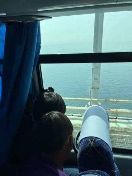 現在明石海峡大橋を通過しています。