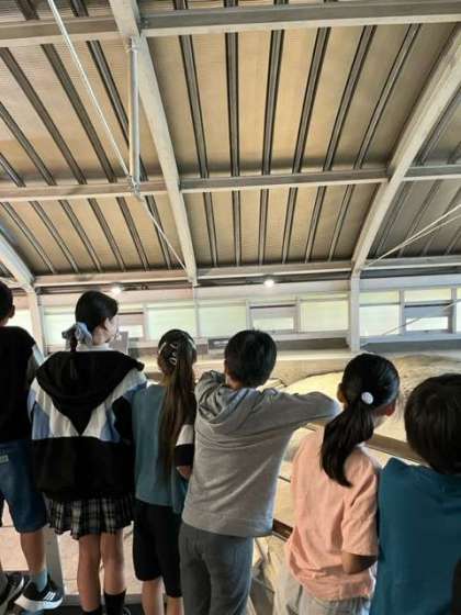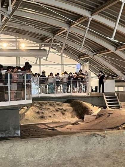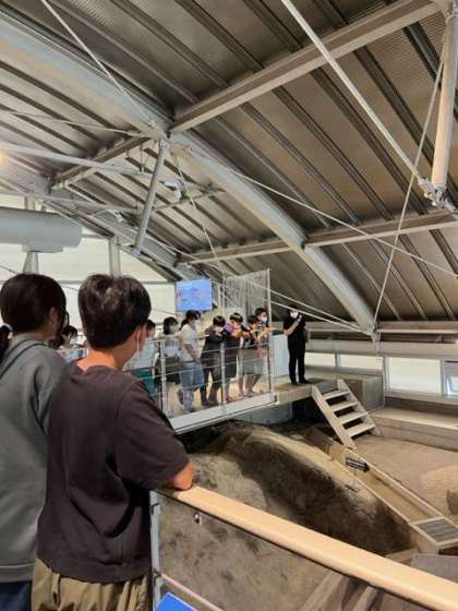 ガイドの方のお話を真剣に聞いています。