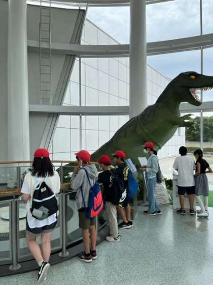 科学館の入口では大きな恐竜が出迎えてくれます。