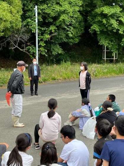 施設の方のお話を聞き、玉ねぎ掘りをします。