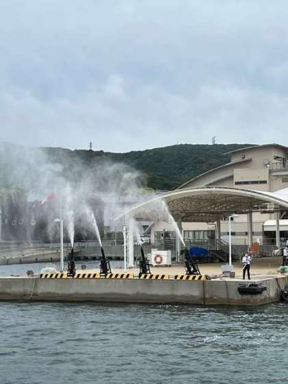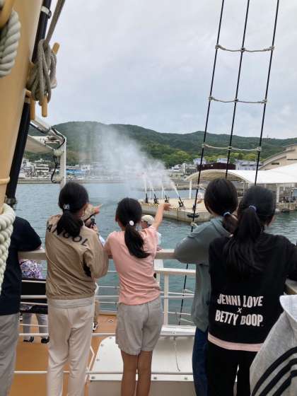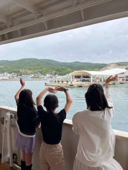少し風が強いですが大きな船に子どもたちは大興奮です。港のスタッフに見送られて出発しました。