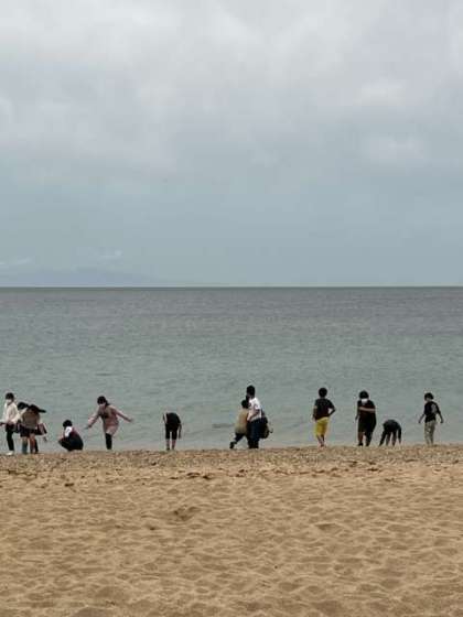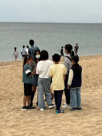 広い砂浜、子どもたちは思い思いの時間を過ごしています。