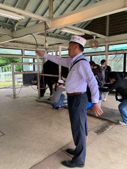 牧場のスタッフの方と校長先生による乳しぼり講座の後はいよいよ乳しぼりスタートです!す