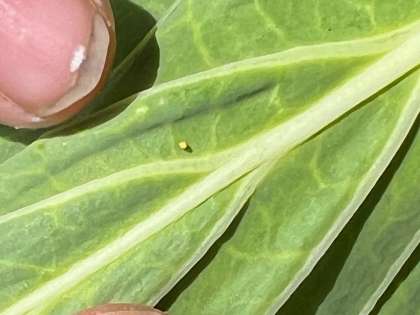 今日は,キャベツについているモンシロチョウの卵を見つけ、