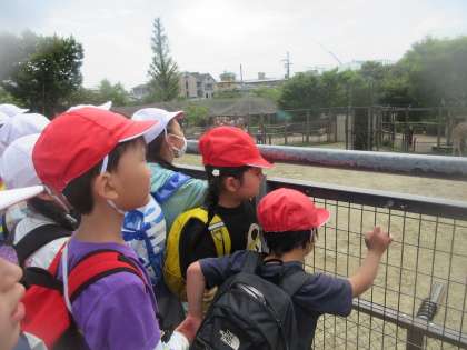 1年生と2年生と一緒に京都市動物園に行きました。2年生がリードしながらオリエンテーリングで「動物ビンゴゲーム」を進めてくれました。1年生をリードしてくれる姿は頼もしかったです。1年生は色々な動物に出会えてとても楽しめました。グループで食べたお弁当はとてもおいしかったですね。