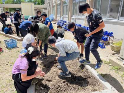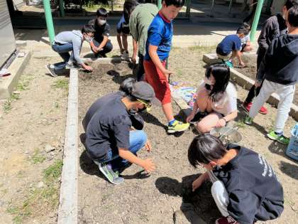 昼休みや掃除時間を使って、何人かの子どもたちと花壇の手入れをしました。改修工事が終わったところなので、まだまだたくさん草や石がある状態でしたが、一生懸命石拾いや土ほぐしを行ったおかげで、花が植えられる状態になりました。園芸委員中心に、明日は花を植えたいと思います。