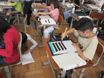 今日は、3・4時間目に習字の学習がありました。