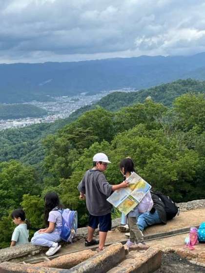 ご飯を食べた後は、京都市の絵地図を見ながら学習です。北はどちらかな?