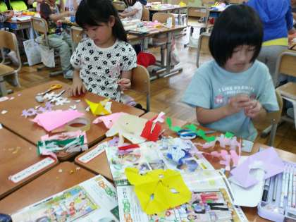 参観授業では教室の後ろの掲示で『ちょきちょき かざり』を見ていただいたことと思います。それぞれにこだわり、一生懸命作っていました。自分の思った以上によくできた・・・と満足げな子どもたちでした。