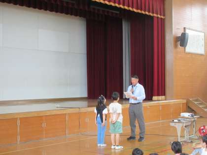 校長先生からは、6年生がプール清掃での頑張りや、修学旅行での話を聞く姿がとても素晴らしかったというお話がありました。また、楽しみにしている水泳学習が始まりますが、楽しむだけでなく、安全に気を付けて学習をしてほしいというお話がありました。