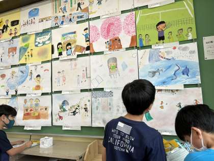一生懸命に描いた作品の素敵なところを見つけ合いました。