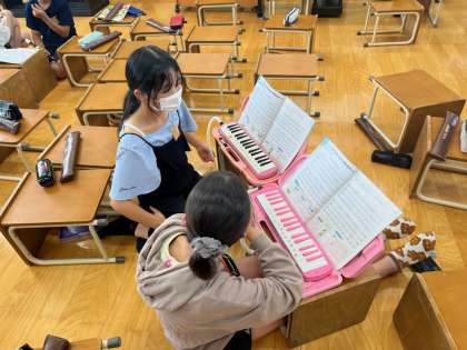 音楽科では合奏の学習を始めました。それぞれが選んだ楽器、選んだパートに分かれて練習し、全員で合わすこともしてみました。練習を始めたばかりなので、まだまだ美しい音色の重なりとは言えませんが、練習を重ねて、それぞれのクラスで素敵な合奏ができたらいいなと思います。