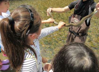 保護者の方が捕まえたヘビを