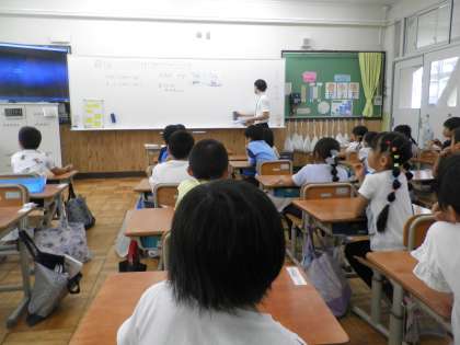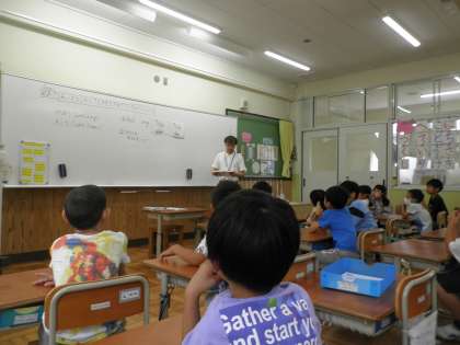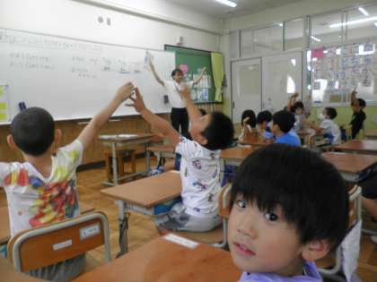 昨日、初めての外国語の学習がありました。ALTのザカリー先生といっしょに、あいさつや気持ちを表す言葉の学習をしました。初めて聞く英語に子どもたちは大興奮。「お腹が減った」ことや「眠たい」ことを英語でどういうのかを、自分たちでジェスチャーを考えながら楽しみながら学習している姿はとてもかわいかったです。そして「Hellow song」をジェスチャーといっしょに楽しく歌っていました。ぜひお家でも、聞いてあげてください。。