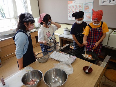 6年2組は16日の金曜日、調理実習を行いました。