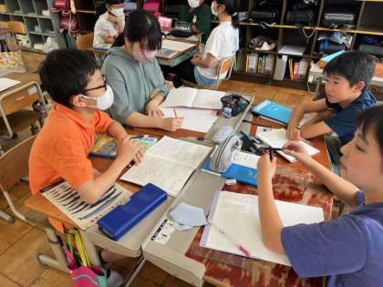 国語科「情報と情報をつなげて伝えるとき」では、ブラジルの農業の情報と日本の農業の情報の資料から共通点を見つけ、まとめの段落を作るという学習をしました。個人で考えたあと、グループで一つにまとめ、どのまとめ方が一番よいかコンテストを行いました。よりよいものにしようとたくさん話し合う姿が素敵でした。