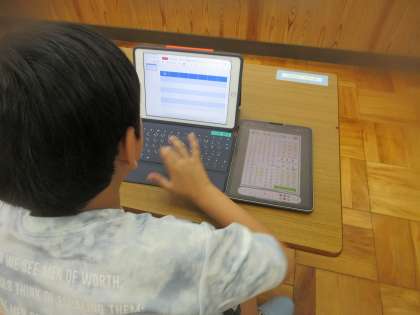 カレンダーをタブレットで作りました。キーボードを操作しながら,行事や日にち,曜日を入れていきました。時間はかかるものの丁寧に作っていました。