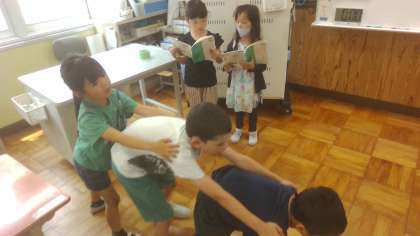1年生は今、国語科で「おおきなかぶ」を学習しています。おじいさんの気持ちを考えたり、繰り返しの表現に注目したりして、学習した後、自分たちで役を決めて、音読劇に臨みます。練習では、みんな楽しそうに音読劇に向けて協力していました。音読劇の本番が楽しみです。