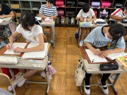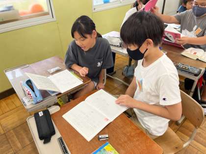 国語科「夏のさかり」では、夏に関する語句から夏のイメージを広げ、俳句や短歌に表す学習をしました。春のときよりも、比喩表現を使ったり、切れ字を使ったりと表現の工夫が増え、すてきな歌がたくさんできていました。友達と推敲することで、よりよくなったものもありました。