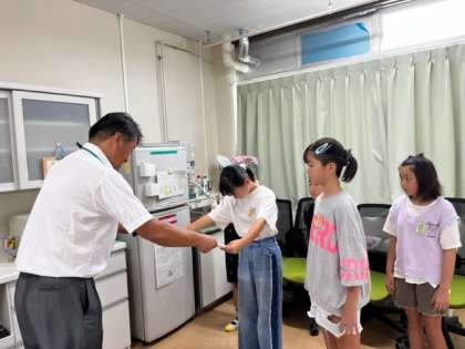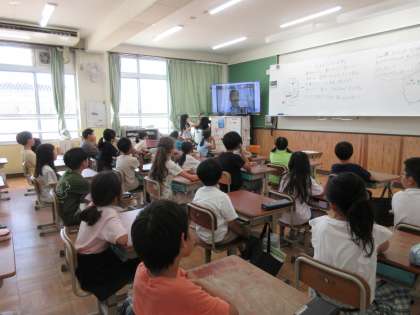 校長先生からは、夏休みに完成した「みんなの池」や葛野小学校の仲間入りをした転入生の紹介がありました。