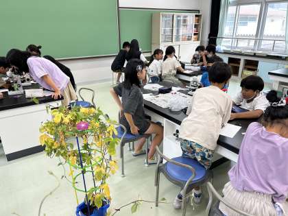 理科の学習では、いよいよアサガオの花粉を顕微鏡で観察です!
