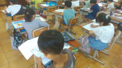 筆算の学習が進んでいます。1学期とは違い、一の位も十の位も繰り上がることに気付いた子ども達。いくつ繰り上がるのか、気をつけて計算したいと話していました。集中して計算できました。