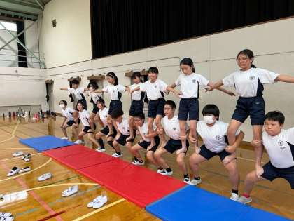 上の人がどう足を置くのか、下の人がどう支えるとよいのか、相談し合いながらポイントを見つけ、全員そろって最後のポーズを決められるといいですね。