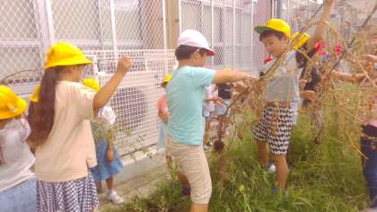 ミニトマトの収穫が終わったので、花壇の片付けをしました。みんなで大切に育ててきたので、たくさんのミニトマトを収穫することができましたね。きれいに片づけて、次の準備を進めていきましょう。