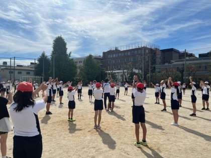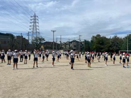 昨日は初めて、運動場に出て、スポフェスに向けて隊形の確認をしました。フラッグの演技は、色々な隊列移動があります。常に前や横を意識しながら美しく移動できたらいいなと思います。暑い中よくがんばりました。