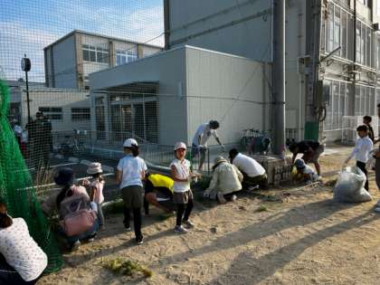 17日(日)に地域の方を中心に区民体育祭、スポーツフェスティバルに向けて草引きを行いました。