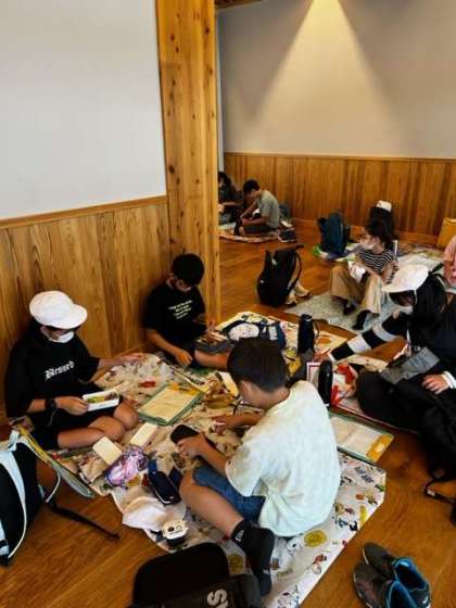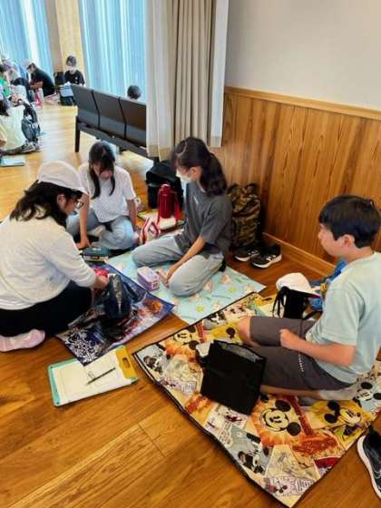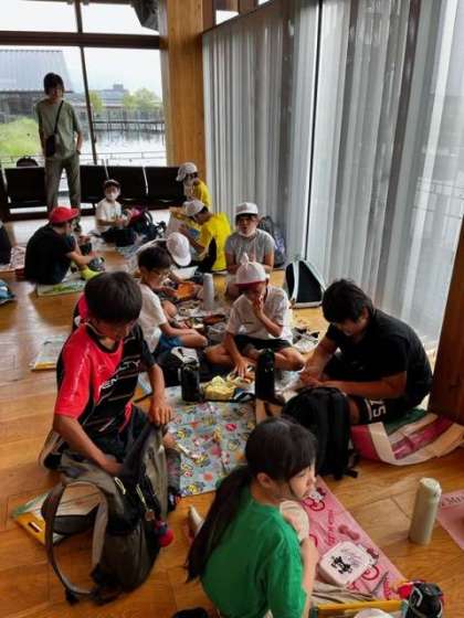 VRシアターで見学した後はお昼ご飯です。雨が降ってきたので室内の場所を用意していただきました。