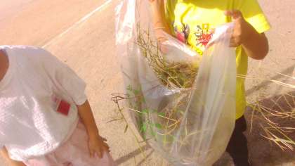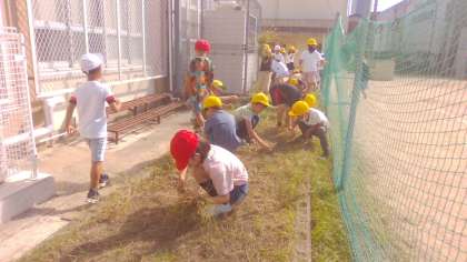 2学期に入り、学年の花壇をきれいにしたのですが、あっという間に雑草が生えてきてしまいました。今日は、生えてきた雑草を抜いて、みんなで耕しました。そろそろ秋に植える野菜を植えたいなと思っています。