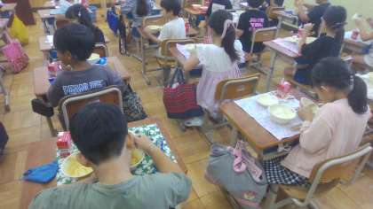 今日の給食は、ごはん・ひじきのソテー・チキンカレー!!授業中には、給食室から良い匂いが漂ってきて、給食時間を楽しみにしていました。おかわりには、たくさんの人が並びました。今日もおいしかったです!
