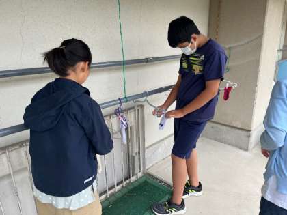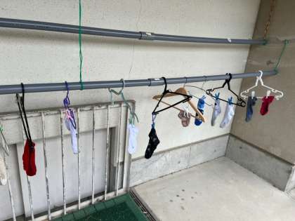 洗った靴下はハンガーと洗濯ばさみを使って干しました。いつもこの工程をしてくださっているお家の方に感謝ですね。