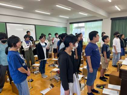 音楽の授業では、「思い出のメロディー」という曲の歌詞の内容を感じ取りながら、旋律の特徴を捉えて、二部合唱を行っています。それぞれの旋律につられずに歌えるようになってきました。