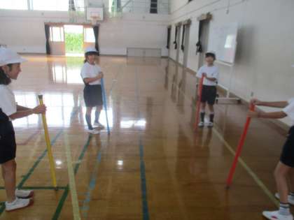 ぼうを縄跳びのようにしてとんでみたり、