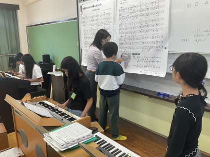 一人一人、取り組みたい楽器を選び、リズムを合わせて合奏です。