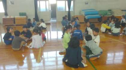 もうすぐ遠足!体育館で、1年生との顔合せ会をしました。新しいメンバーになったので、自己紹介をして仲良くなった後、子どもの楽園で遊ぶことを決めました。当日は、仲良くグループや学年で活動できるといいなと思っています。