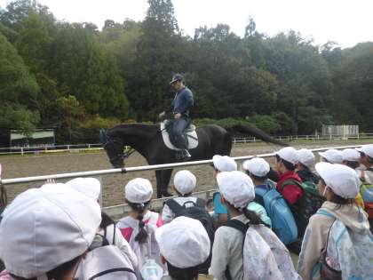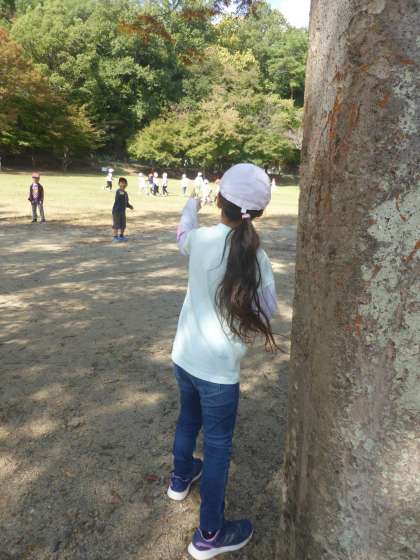 子どもの楽園と平安騎馬隊へ行ってきました。楽園では、1年生と縦割りで活動しました。2年生らしく、1年生にやさしく声をかけたり、1年生の意見を聞きながら活動する姿が見られました。平安騎馬隊では、馬があるく姿や、えさを見せていただきました。秋見つけもたくさんして、たのしい1日になりました。朝早くから準備をありがとうございました。