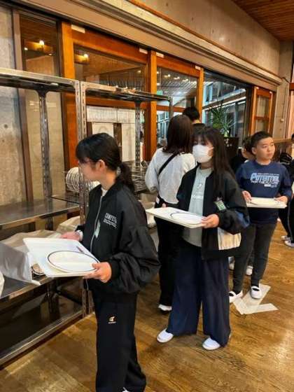 たくさん活動してお腹もぺこぺこ。夕食の様子です。