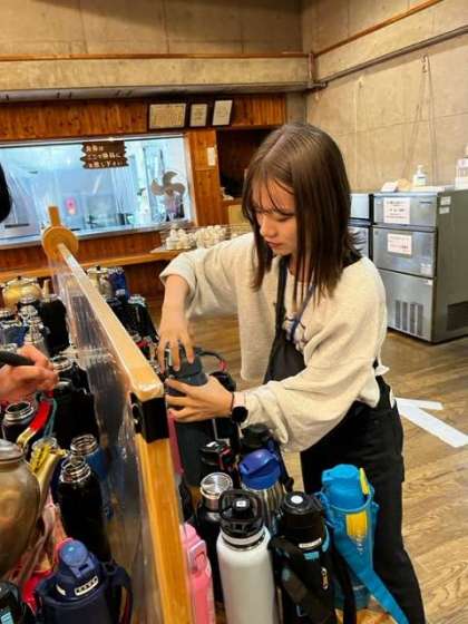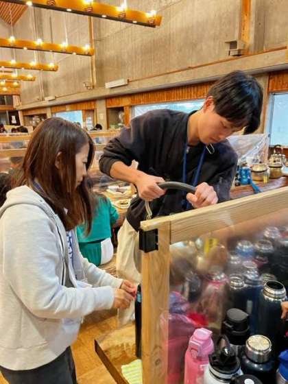 夕食を食べている裏で先生方がお茶を入れています。多くの方が皆さんの活動を支えてくださっていますね。