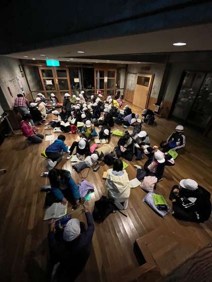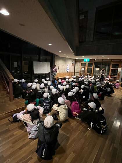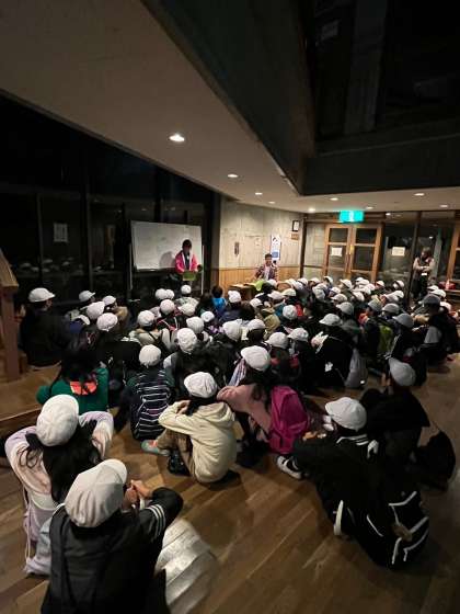 ナイトハイク後は、ミーティングルームに戻り振り返りです。班長の司会で振り返りを進めていきます。