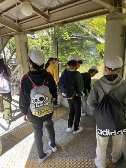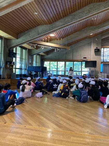 学年を半分に分けて館内オリエンテーリングをしているグループの様子です。お昼ご飯の後、クライミングと交代します。