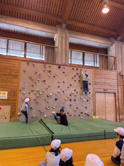 ボルダリングでは遂に校長先生がチャレンジします。
