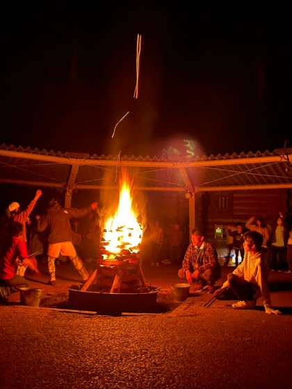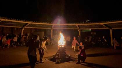火を囲んでレクリエーションが始まりました。