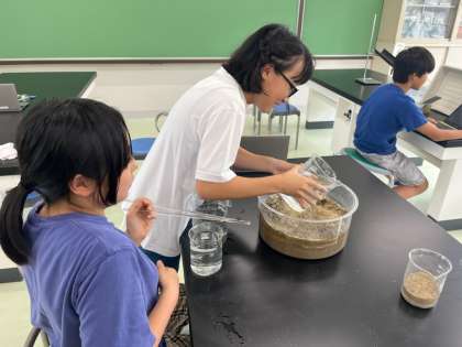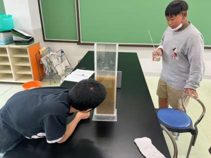 理科の学習では、土地のつくりや地層について、自分たちで調べたいことを選び、調べる方法を考え、選択し、実際に調べてまとめていく学習をしています。図書室で本を見て調べたり、インターネットで調べたり、動画を視聴したり、実際に理科室で実験したりと調べ方がそれぞれでとても面白い!主体的な学びが見られています。まとめ方も、新聞、ポスター、ロイロノート、パワーポイントと自分で選びます。発表が楽しみです。