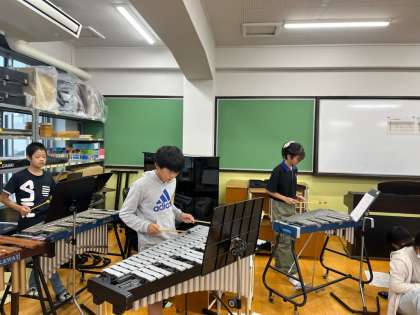 音楽科では6年生2度目の合奏の学習に入りました。「風を切って」を演奏します。前回とは違う楽器に挑戦し、練習を始めました。まだまだ自分のリズムやメロディーが把握できていない様子。練習を重ね、素敵なハーモニーを奏でてほしいです。