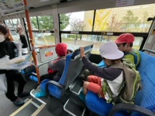 バスの中では静かに過ごしていました。降りる時にはボタンを押して運転手に降りることを知らせることができました。
