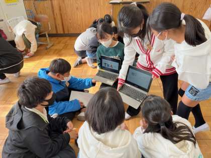 総合的な学習の時間には、それぞれが会社の理念を意識しながら活動しています。休み時間や放課後にも精力的に活動する姿も!!