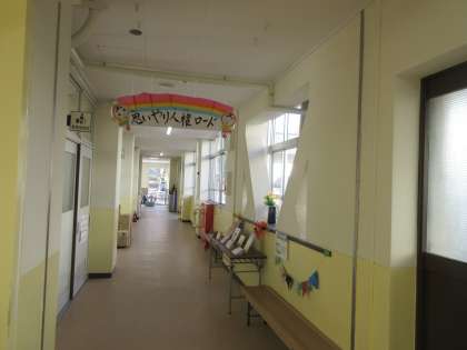 職員室前や渡り廊下は「人権ロードとして」親子人権標語が掲示されています。